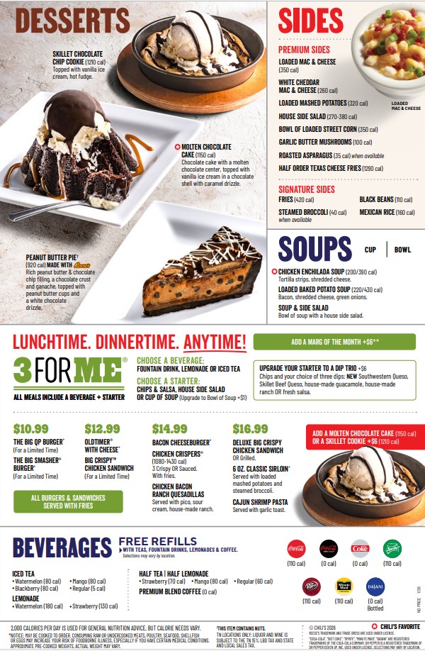 Customer favorites not only praise Chili’s generous portions and fresh ingredients, but also highlight the welcoming, family-like atmosphere created by attentive staff. Whether you’re indulging in the bacon ranch chicken quesadilla or the classic all-time burger, Chili's offers satisfying, well-balanced meals that promise a memorable dining experience.